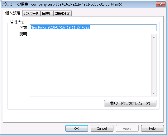 ポリシーを編集するには、カスタマイズしたポリシーを一覧から右クリックし、編集ボタンをクリックします。変更を行ったら、OKボタンをクリックします。用意されているポリシーは編集できません。