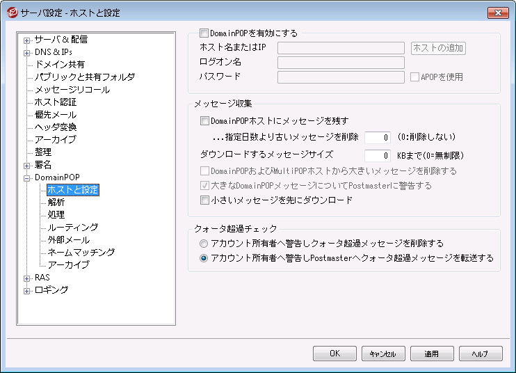 DomainPOPおよびMultiPOPホストから大きなメッセージを削除する