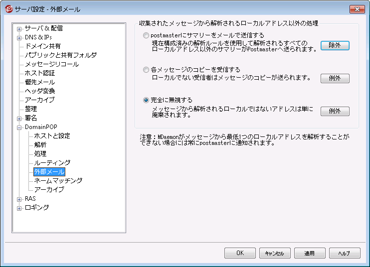 収集されたメッセージから解析されるローカルアドレス以外の処理...