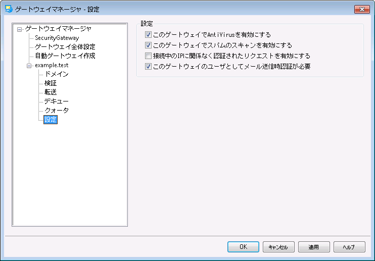 MDaemon AntiVirusを使っていて、このドメインゲートウェイのメッセージをスキャンする場合は、このオプションを有効にしてください。このオプションを無効にするとAntiVirusはこのゲートウェイのメッセージをスキャンしません。
