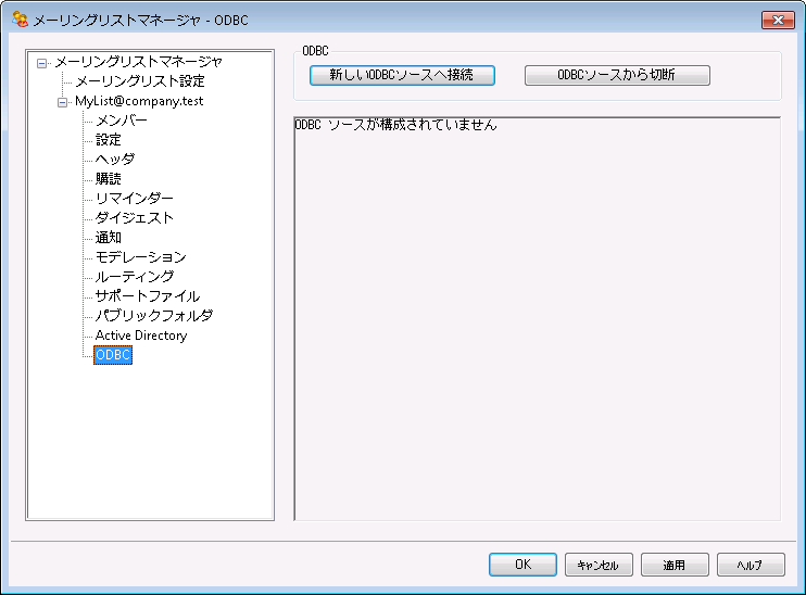 ーリングリストエディタのODBC画面は、リストにリンクするMDaemon用のデータソース、テーブルおよびフィールドマッピングを選択するのに使用します。ために用います。メールが到着する度に、SQLクエリが自動的に実行され、その結果、メールアドレスが、リストのメンバーの1つとなります。