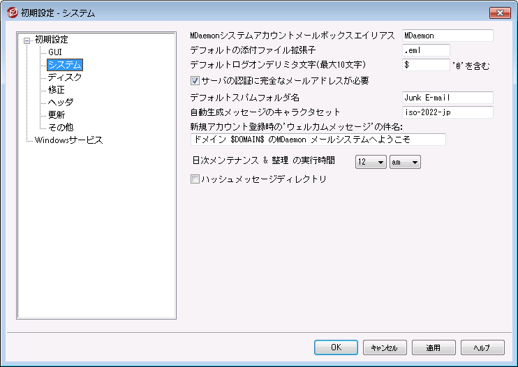 MDaemonシステムアカウントメールボックスエイリアス [アドレス]