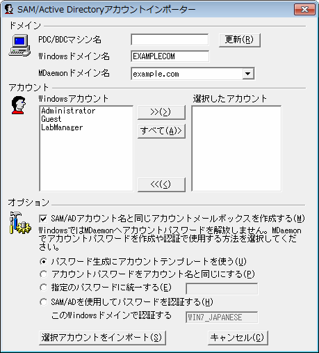 SAM/Active Directoryアカウントインポーター
