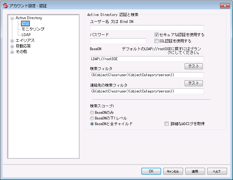 Active Directoryを検索する際の検索範囲です。