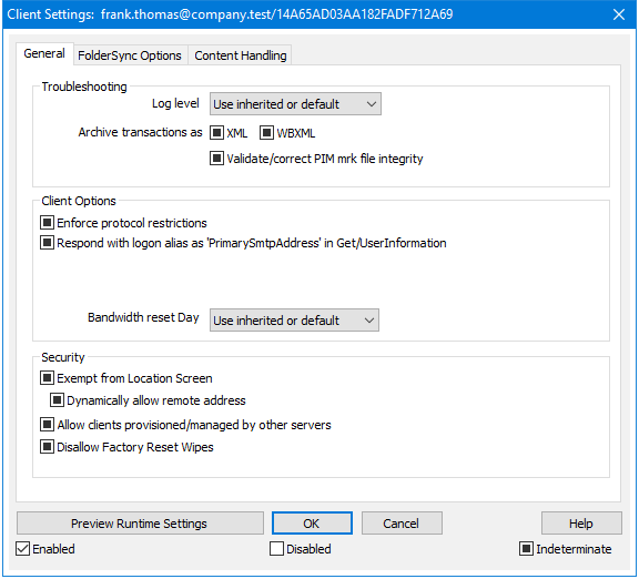 ActiveSync Client Details