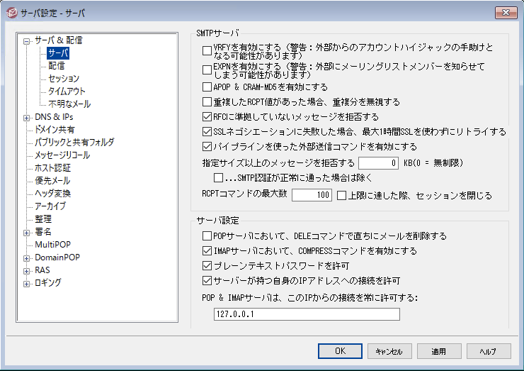 POP & IMAPサーバはこのIPからの接続を常に許可する