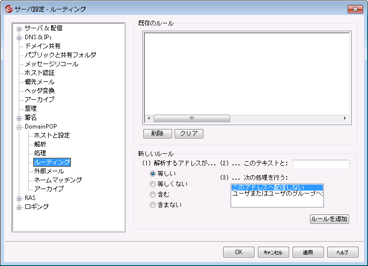 このアドレスへ配信しない - このルールを選択すると、指定されるアドレスへそのメッセージが配信されるのを防ぎます。
