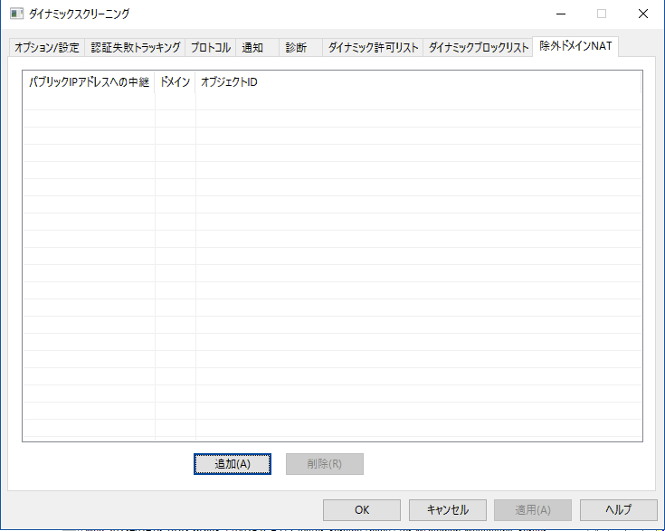 この画面はダイナミックスクリーニングのオプション/設定で、詳細な管理画面を有効にする、を有効化すると利用できるようになります。