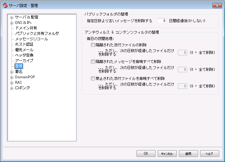 古いメッセージを削除(経過日数 XX 日) (0=しない)
