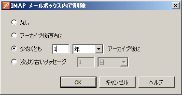 古いメールの自動削除の設定はとても簡単です。アーカイブの設定ウィザードで、次のどの条件でメールボックスからメールを削除するか選択するだけです。