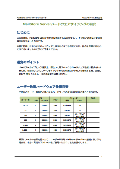 MailStore Serverの導入にあたり、ハードウェアのサイジングの目安をご紹介しています。