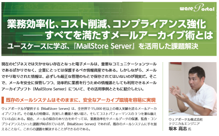 マイナビニュースで、MailStore Serverの活用事例やポイントをご紹介頂きました。