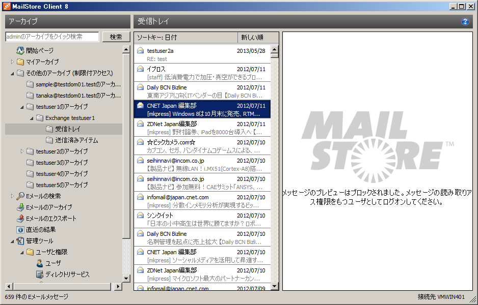 IT部門のシステム管理者はそのコンピュータにおける管理者権限を持っていますので、アーカイブされた すべてのメールデータにアクセスすることができます。 しかし組織のメールデータには、機密情報やプライバシーに 関わるものも少なくありません。例え信頼のあるシステム管理者であっても、不要な疑いを避ける意味でも システム的な操作権限とメールコンテンツの閲覧権限を分離が望ましい場合があります。