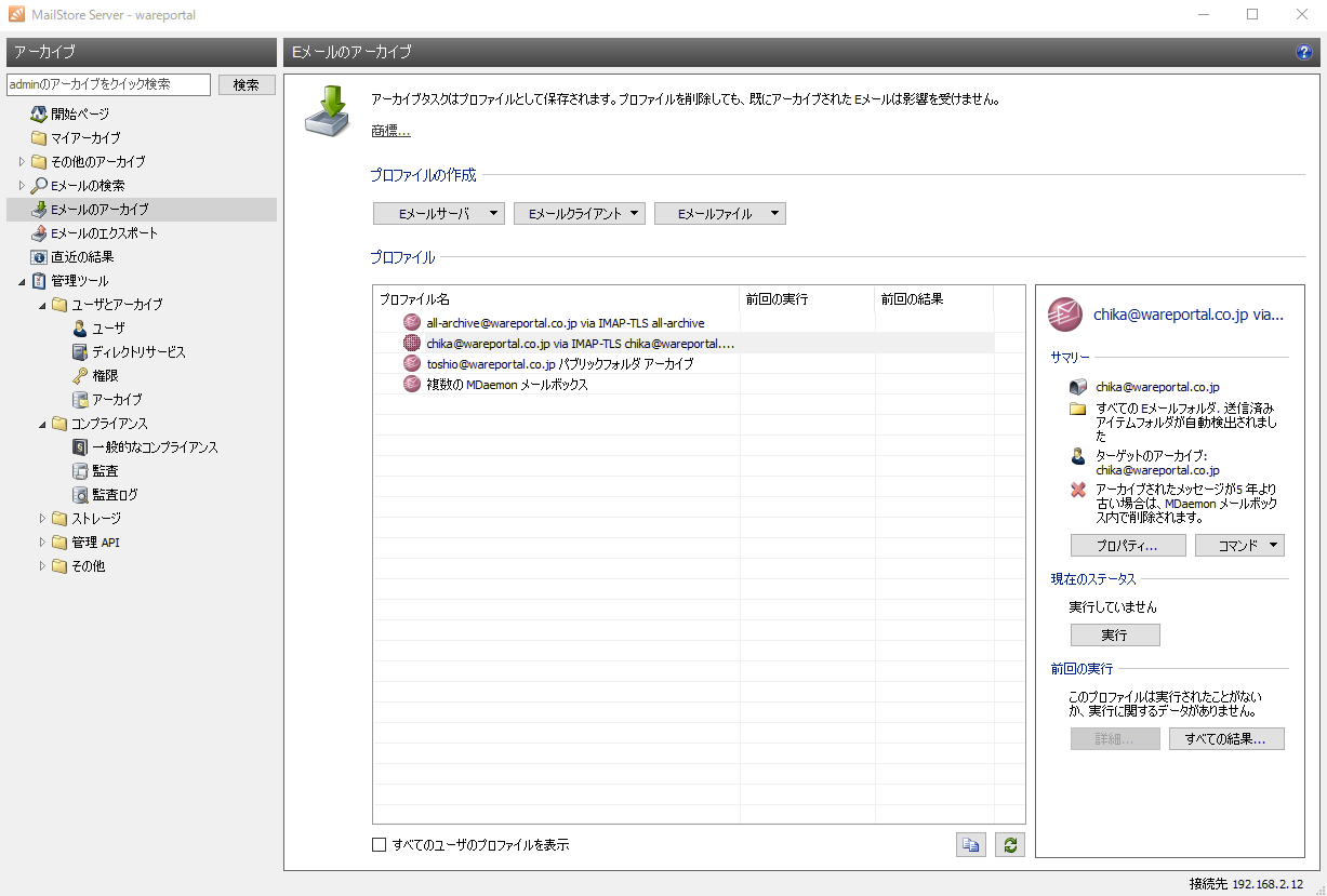 アーカイブ処理は、個々の「プロファイル」として保存されます。プロファイルは、手動、指定した時間、または自動で実行できます。