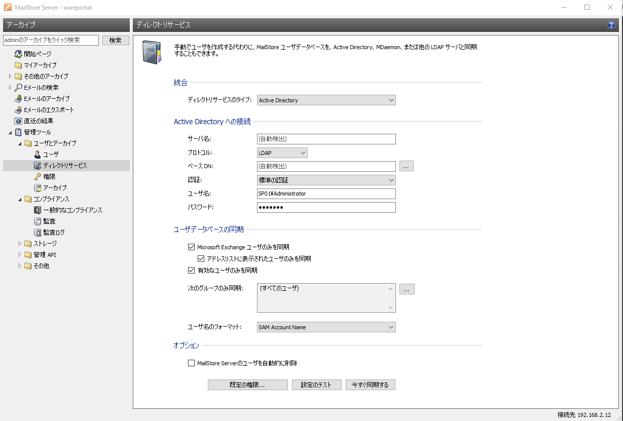 ユーザーは手動で作成する他、Active DirectoryやLDAPサーバー、Office 365やGmail、MDaemonのユーザー情報と連携して自動生成も行えます。