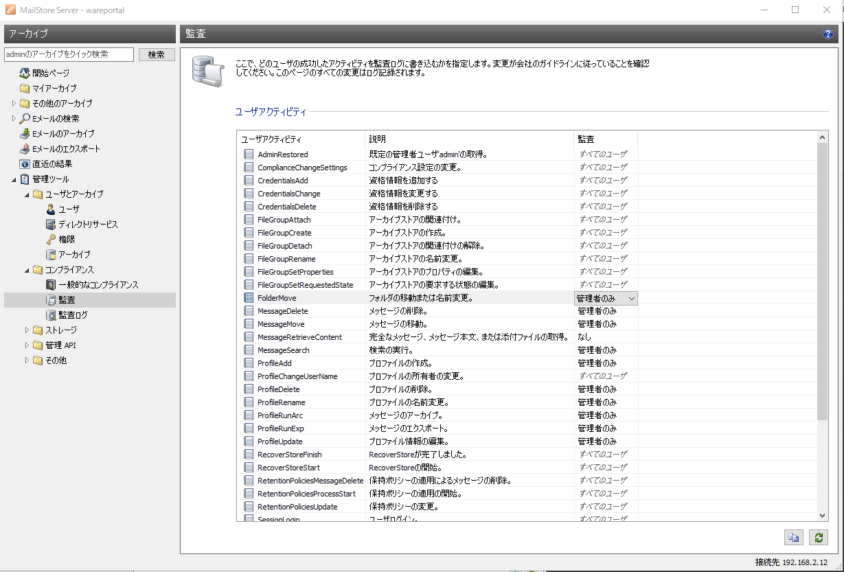 監査設定ではどのユーザー操作をログへ記録するのかを細かく指定する事ができます。