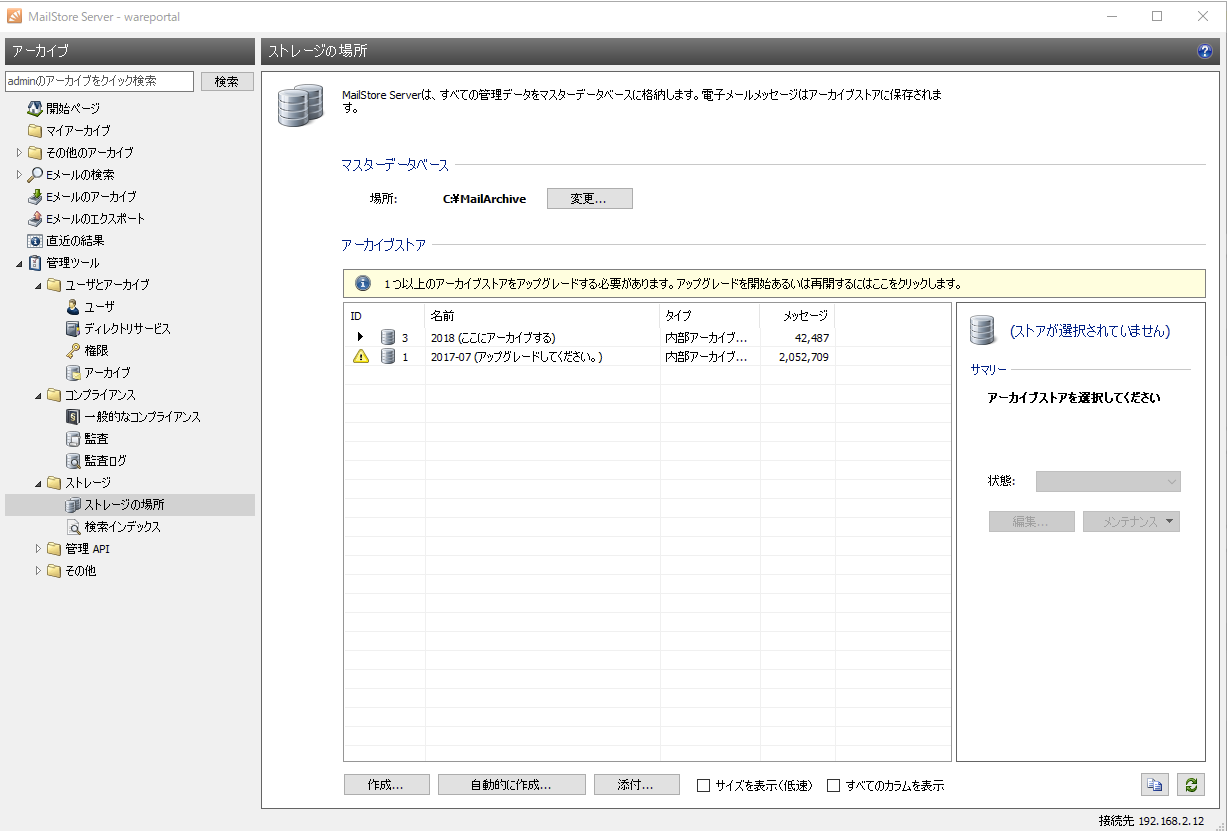 アーカイブする先として、アーカイブストアを作成する事ができます。アーカイブストアは、ファイルシステムへ作成する事もできますし、MicrosotSQLやPostgreSQLを使用する事もできます。