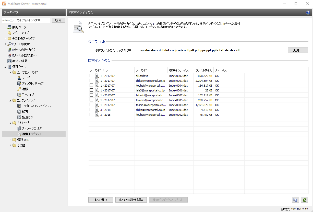 アーカイブストアへ作成した検索インデックスにより、アーカイブの高速検索を実現しています。