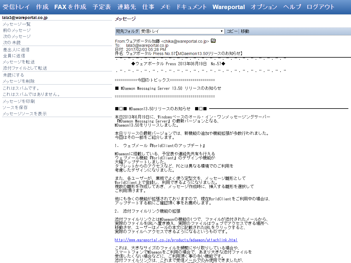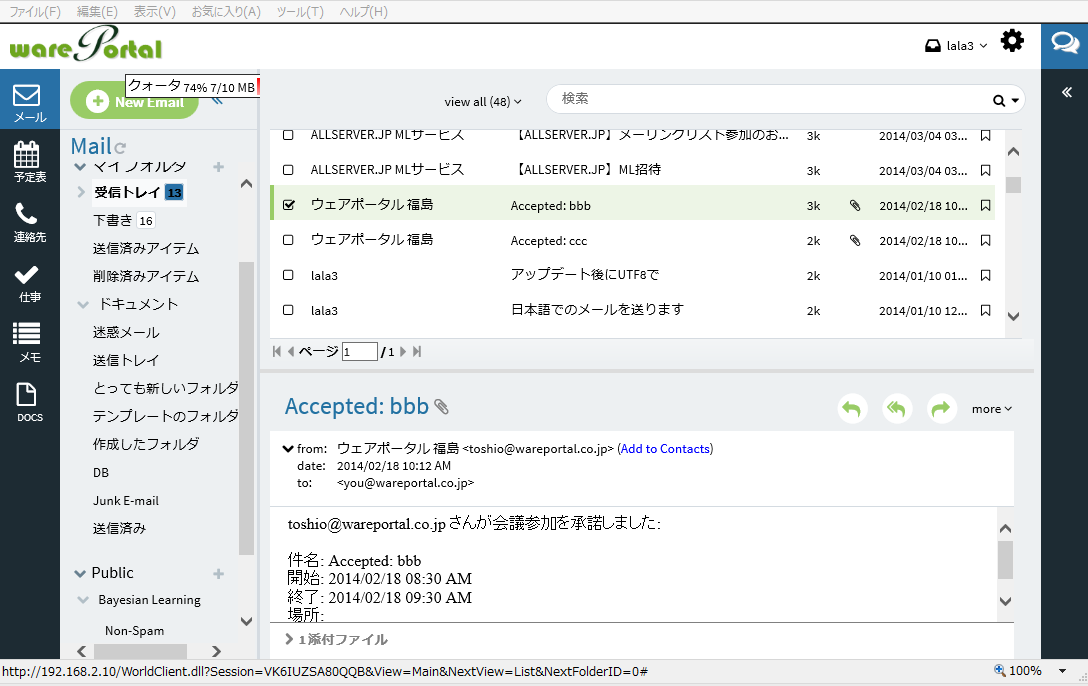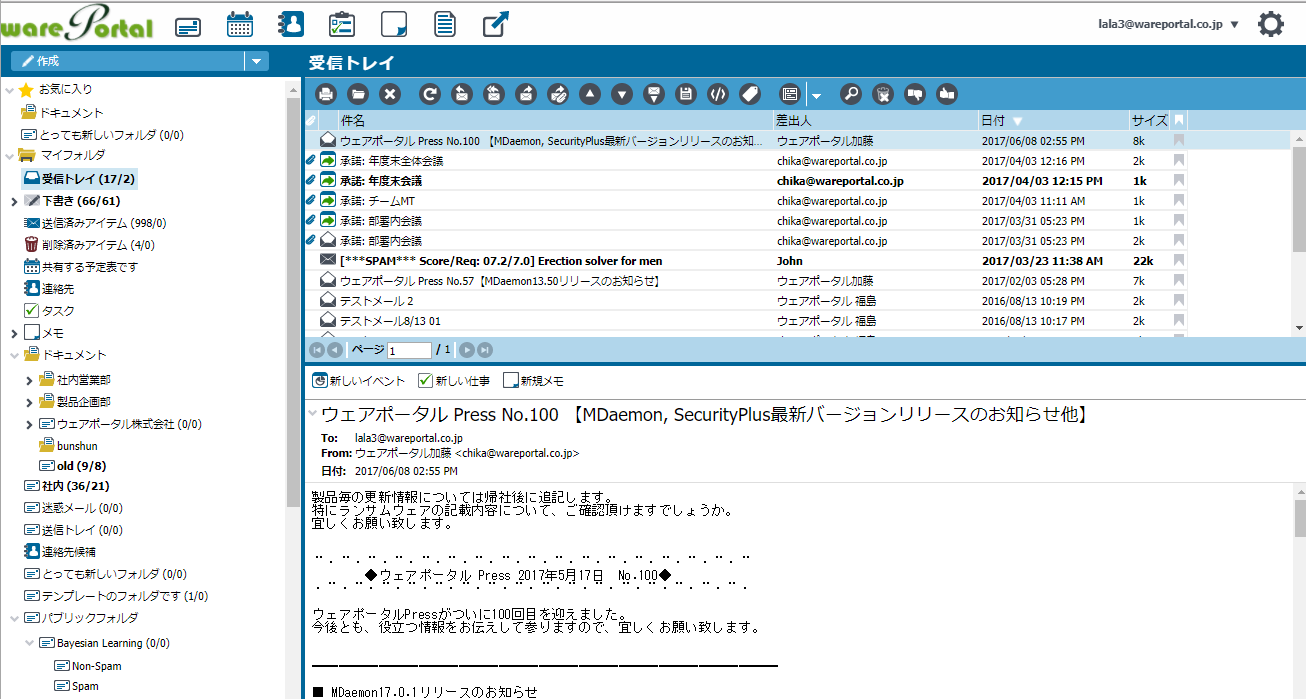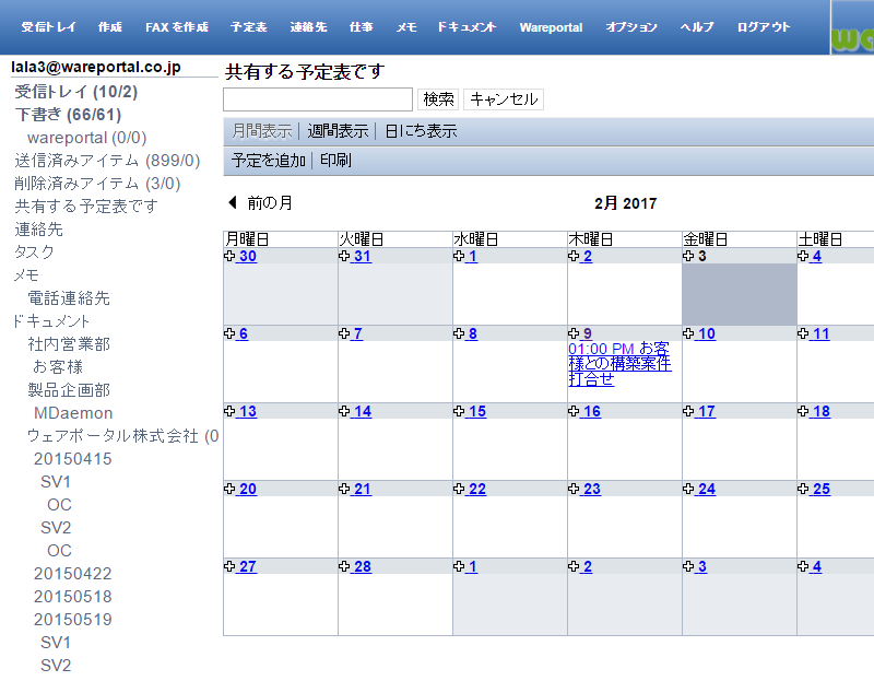 メール・予定表・連絡先・仕事の管理がそれぞれでも共有でも行えるMDaemon標準搭載のウェブメールサーバー