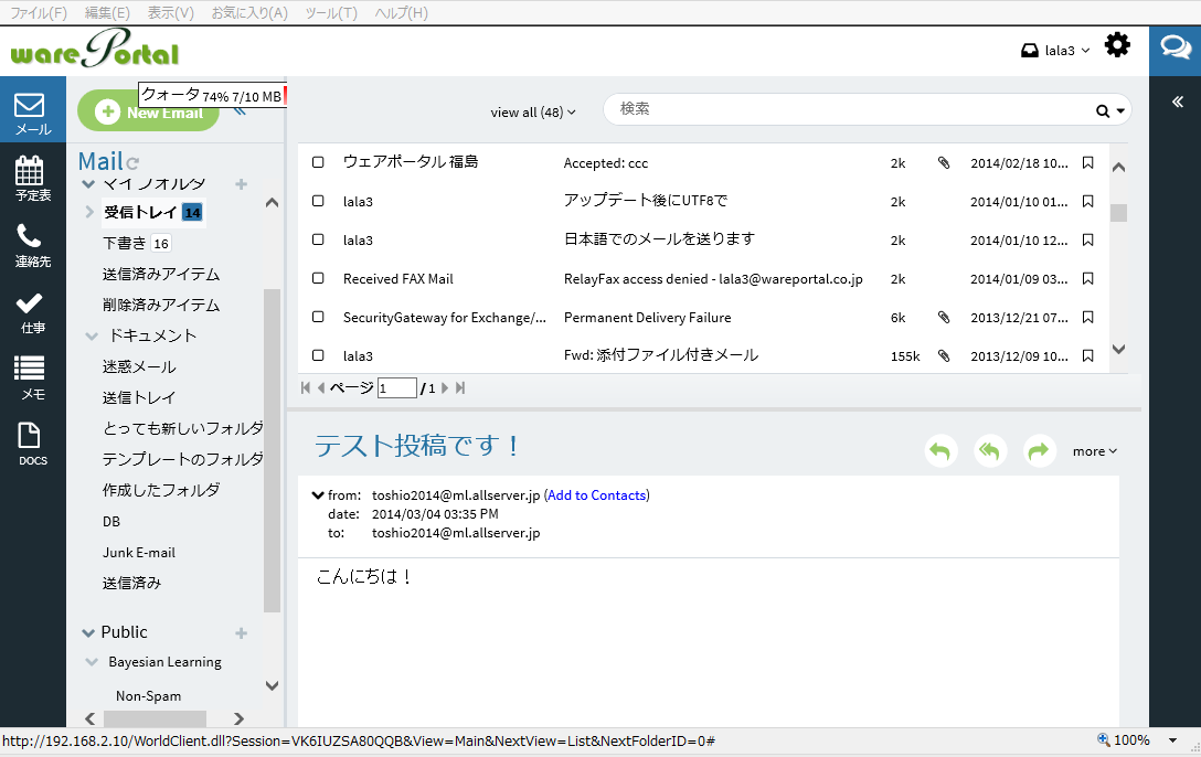 ドラッグ&ドロップでのファイル添付を始め、デスクトップとよく似た操作性で、社内の標準メーラーとしても多くご利用頂いています。メールの振り分けや自動応答の設定など、これまでメーラーで行っていた機能と同様の環境へ、ブラウザさえあればどこからでもご利用頂けます。