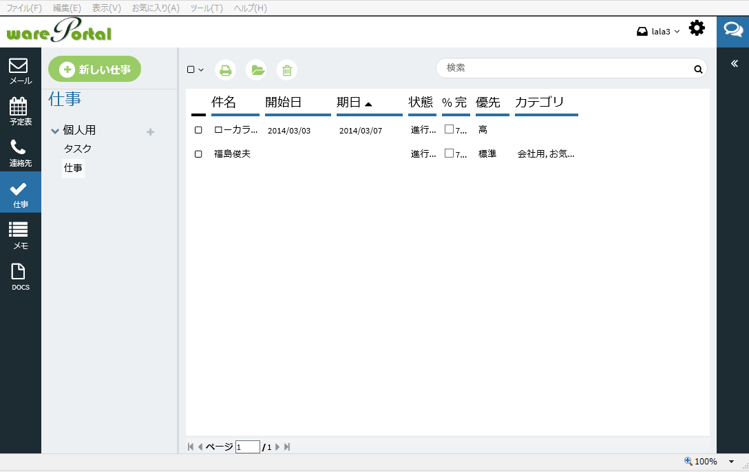 進捗管理も行えるTo-Doリストもブラウザから利用できます。重要度別に並べ替えが行えます。