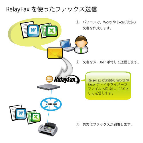 RelayFaxネットワークFaxサーバーソフトウェアを利用すると、デスクトップからファックスの送受信を自動化することができ、既存のメールシステムとの統合管理も行えます。 また、ファックスの送受信数毎や月毎の課金も発生しません。ファックス管理を簡単に手軽に行いたいというお客様へお勧めの製品です。