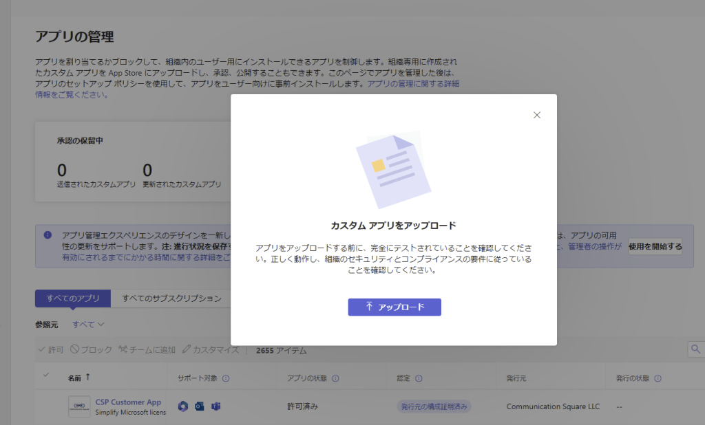 事前に生成し、ダウンロードしたマニフェストファイルをアップロードします。