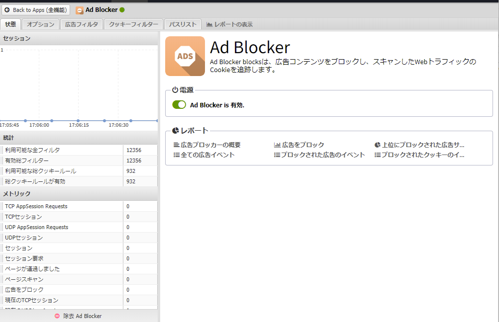 ADブロッカーは、オープンソースのAd Blocker Plusを使って、ゲートウェイで広告を判断し、ブロックします。クライアントへ到達する前にブロックするため、ブラウザへプラグイン等の必要もありません。