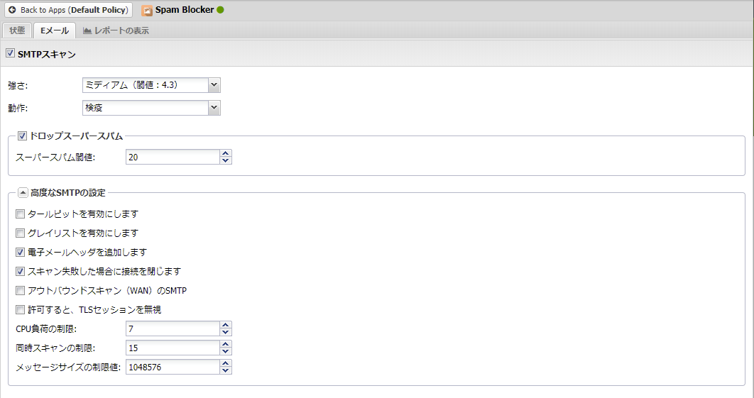 ベイジアンエンジンを使った自動学習機能で、スパムと思われる形式のメールを高い精度でブロックします。ゲートウェイ上で、頻繁に届くスパムを制御するのにお勧めの機能です。